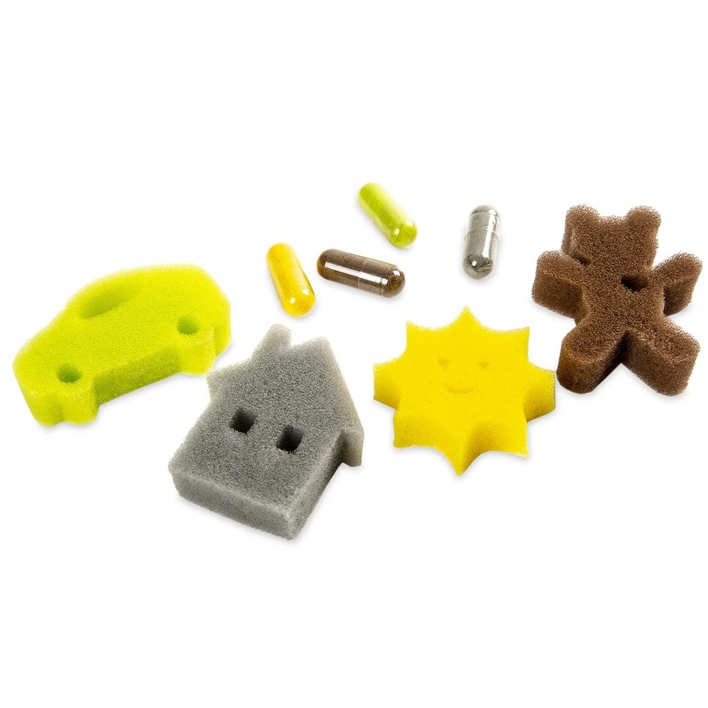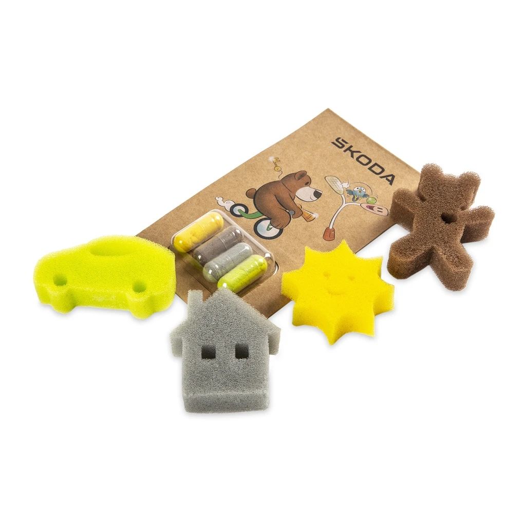 Die Kids Sponges sorgen für Freude im Badezimmer: Vier auflösbare Badekapseln verbergen bunte Schwämme in Form von Sonne, Auto, Haus und Teddybär. Einfach die Kapseln ins warme Wasser (ca. 35–38 °C) legen und gespannt zusehen, wie sich die lustigen Schwämme entfalten.