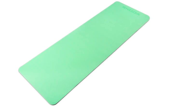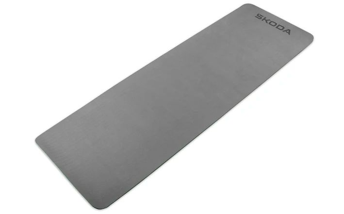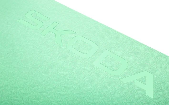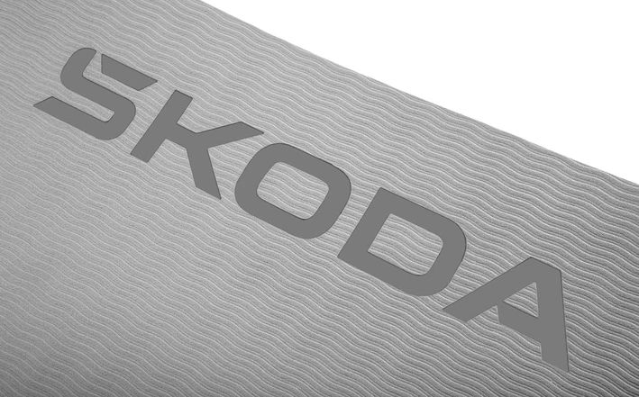Die beidseitig strukturierte und rutschfeste Trainingsmatte mit geprägtem Škoda-Logo bietet ideale Voraussetzungen für ein komfortables Training auf dem Boden.